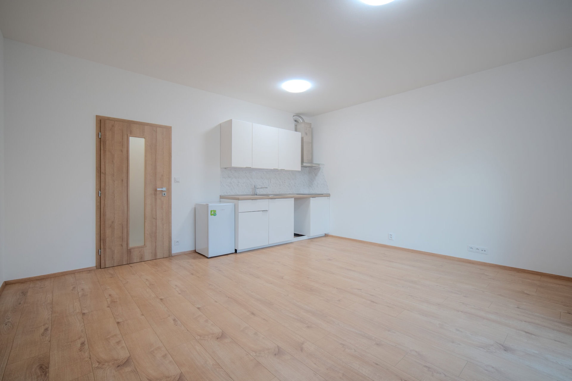 Byt nabízí 29,82 m² užitné plochy a nachází se v prvním patře domu s výtahem. Po vstupu do bytu projdete menší vstupní chodbou (s prostorem na skřín), odkud můžete vstoupit do prostorné koupelny nebo pokoje s kuchyňským koutem a francouzským oknem. Samozřejmostí je centrální dálkové vytápění, vodovod a kanalizace.