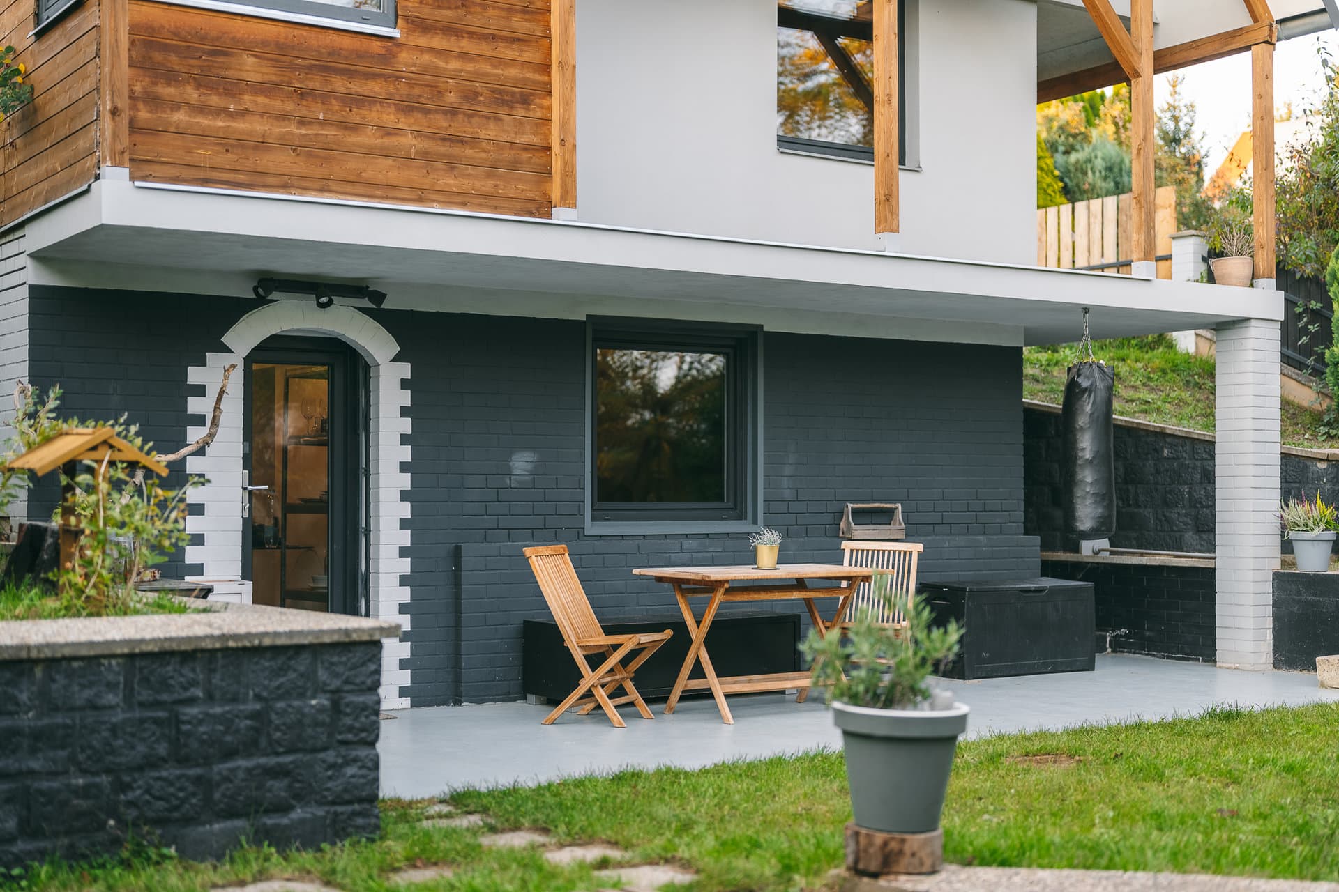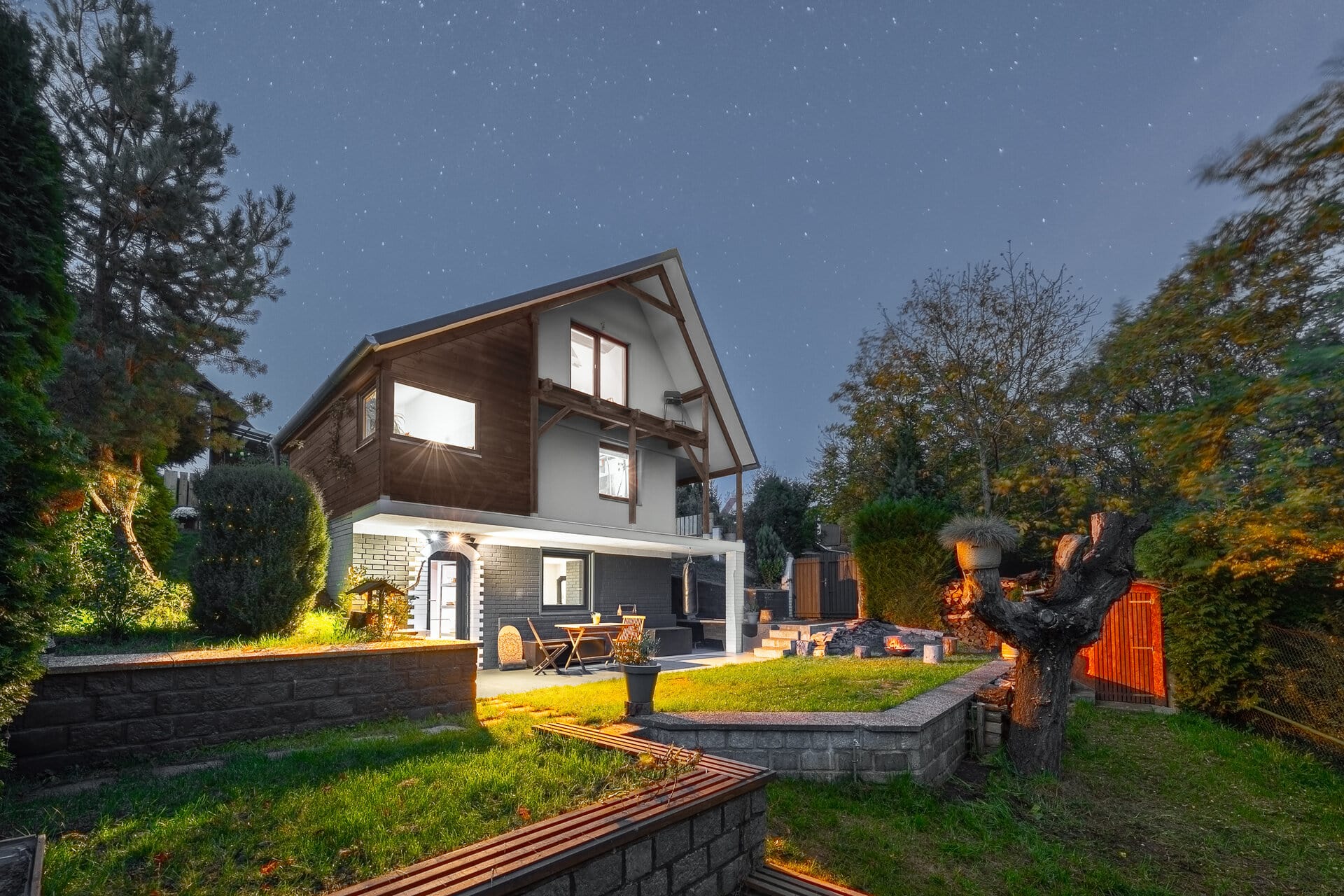Pozemek je z části tvořen kaskádami, kde můžete pěstovat co se vám zamane, jste také v zahrádkářské oblasti :). Pozemek a terasa je orientována na jih a slunce je zde tak svítí po celý den. Parkování je možné přímo vedle pozemku. Cítíte se zde jak někde daleko od Prahy, a přitom jste autem za 15 minut na Smíchově.