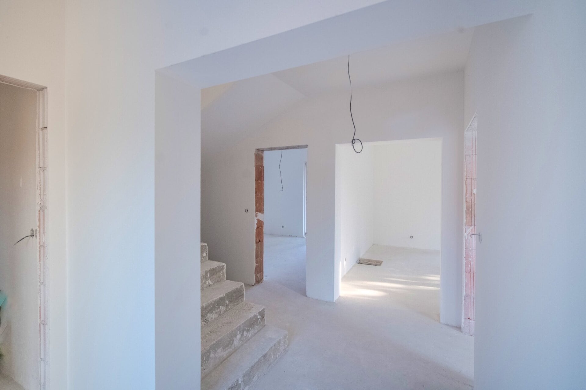 Stavba je provedena poctivě – zděná konstrukce, železobetonové stropy, kvalitní sádrové omítky, podlahové topení ve všech obytných místnostech. Rozvody jsou hotové, zbytek je na vás. Nečeká vás bourání. Jen doladění podle vlastního vkusu.