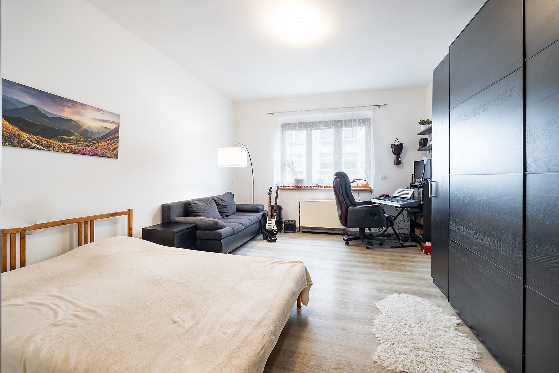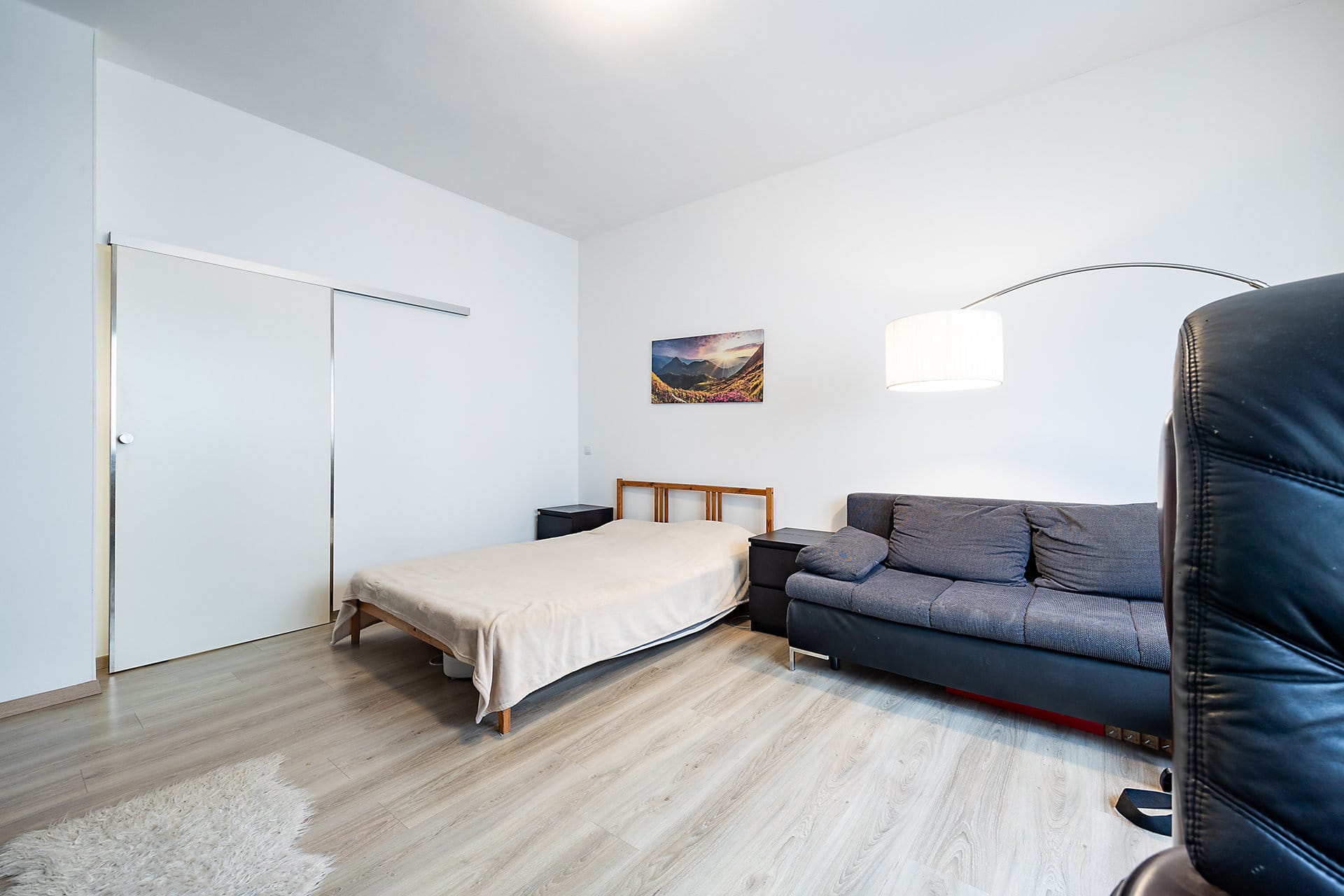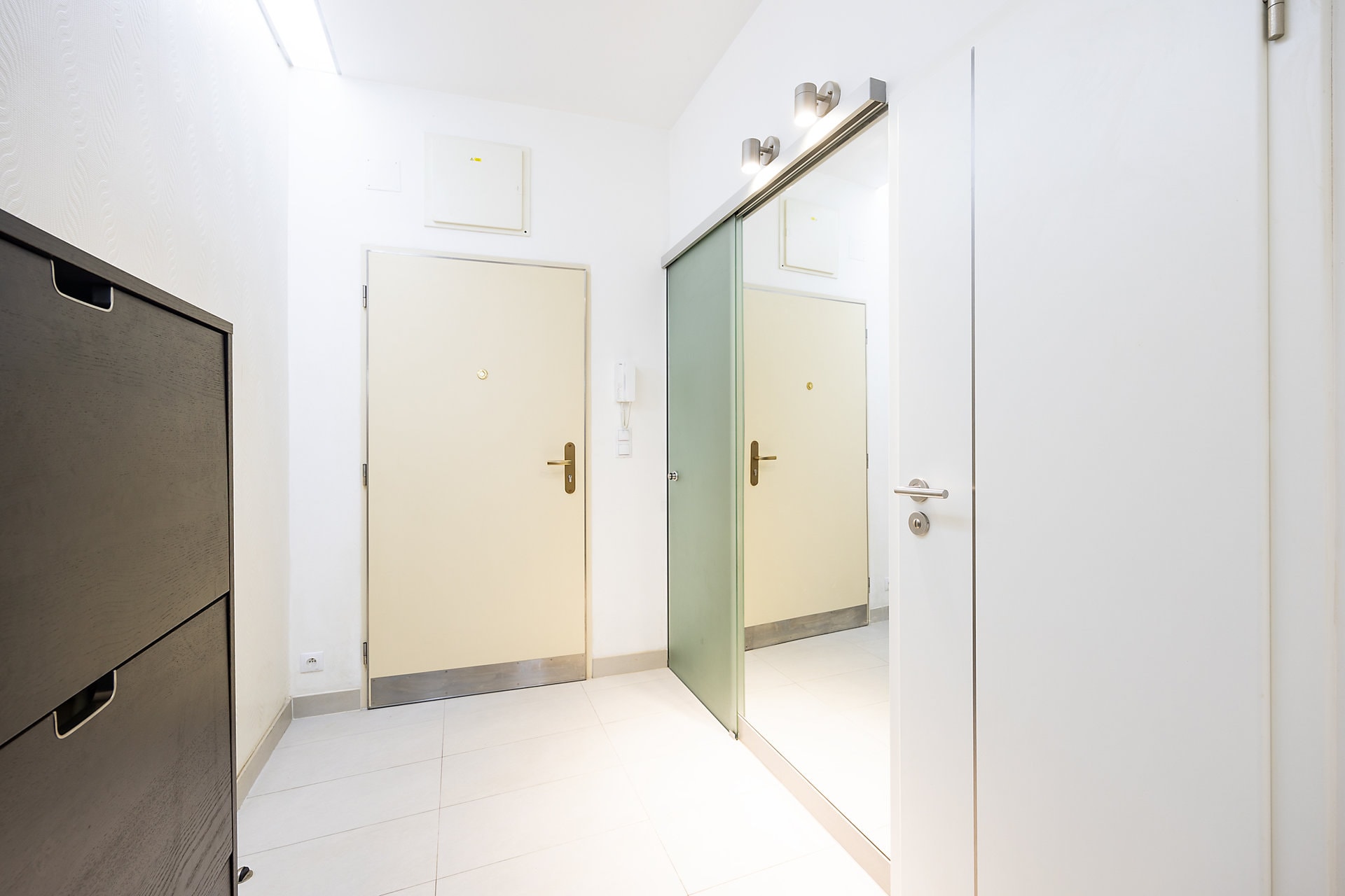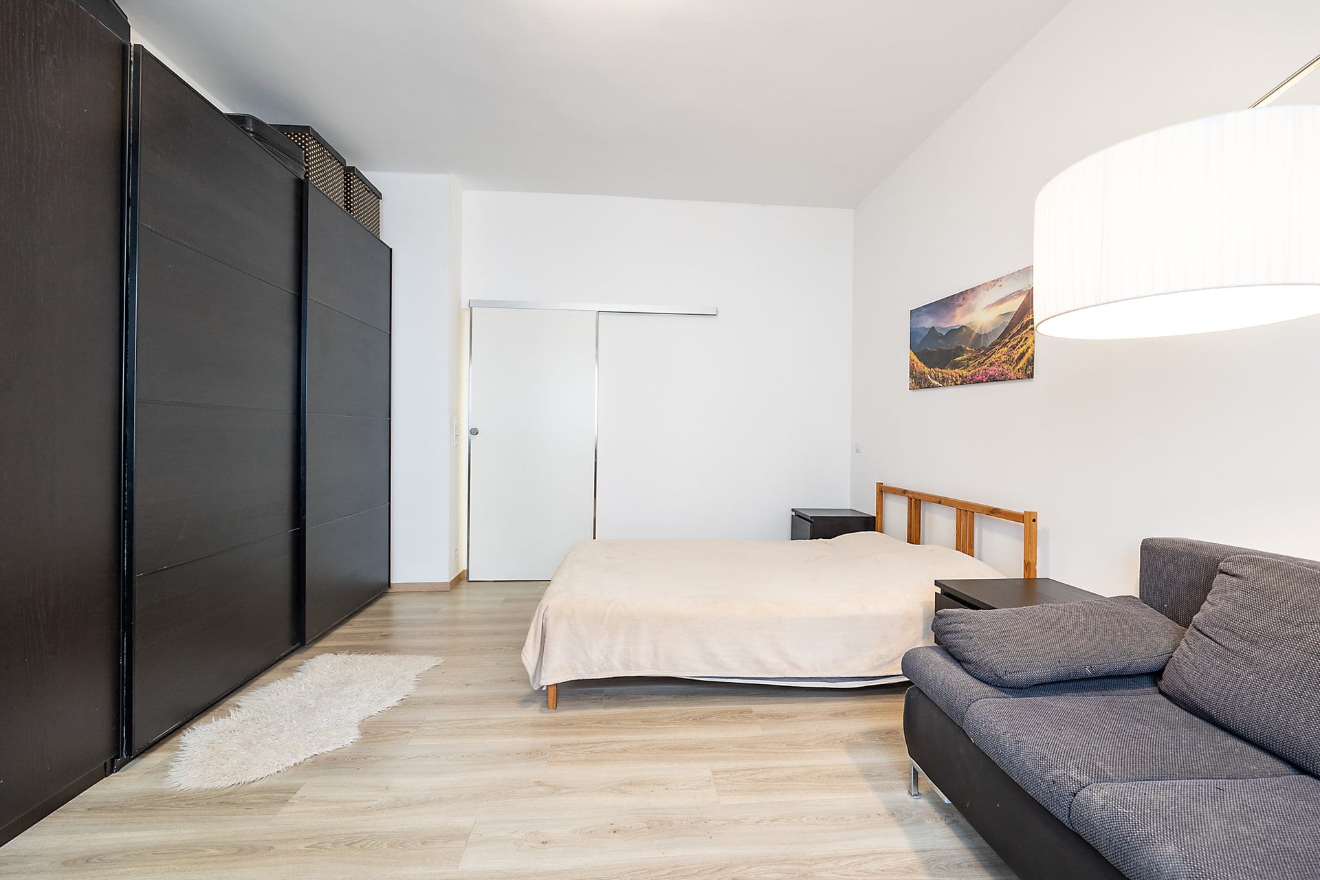 Byt je kompletně zařízený s důrazem na detail a funkčnost, nabízí plně vybavenou kuchyň s jídelním prostorem, útulný obývací pokoj sloužící zároveň jako ložnice s přiléhající en-suite koupelnou vybavenou sprchovým koutem, samostatnou toaletu s praktickým technickým zázemím, šatnu a prostornou vstupní chodbu.